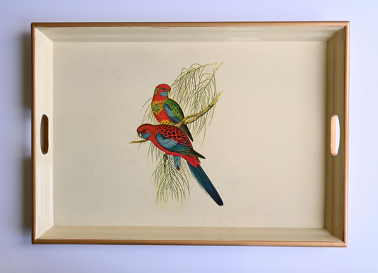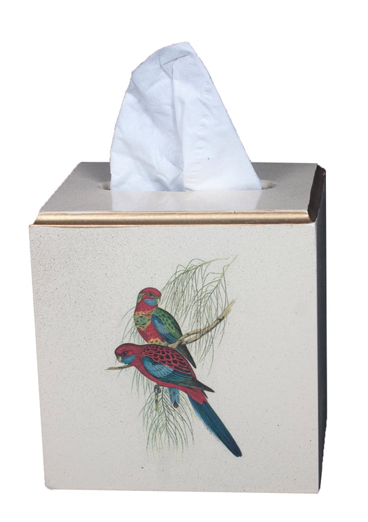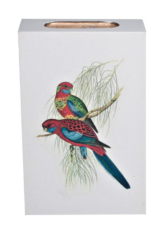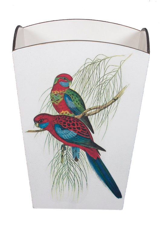 Square Wooden Waste Paper Bin: Pair of Parrots