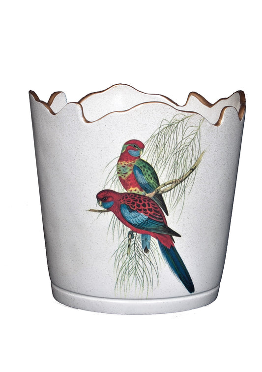 Scalloped Top Cachepot/Decorative Planter: Pair of Parrots