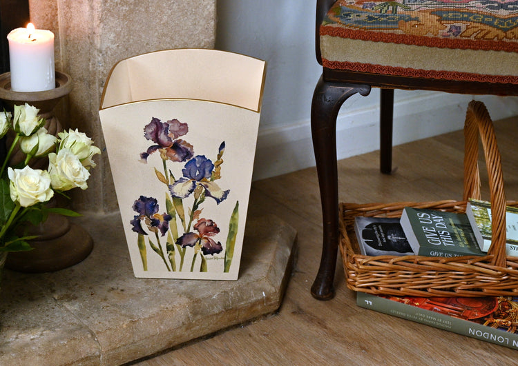 This elegant shaped waste paper bin is a great way to brighten up any bedroom, bathroom, drawing room or study. It looks stunning in the corner of a room. Hand made and decorated from sustainable wood, and finished with elegant hand gilding and a tough lacquer.