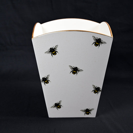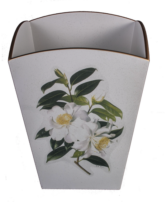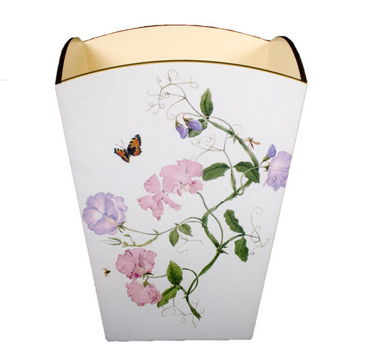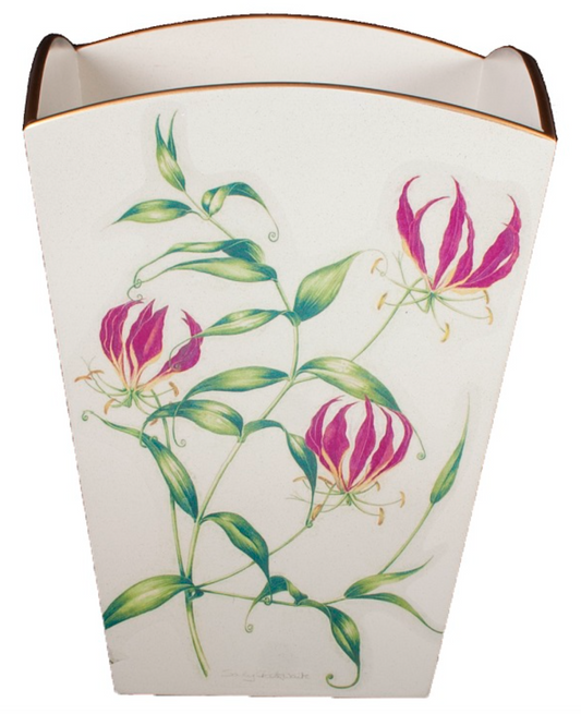This elegant shaped waste paper bin is a great way to brighten up any bedroom, bathroom, drawing room or study. It looks stunning in the corner of a room. Hand made and decorated from sustainable wood, and finished with elegant hand gilding and a tough lacquer.