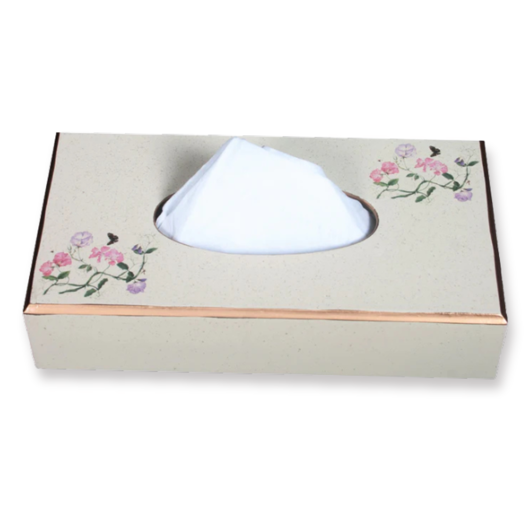 Elevate the everyday with this elegant wooden tissue box cover, designed to disguise standard tissue boxes in a stylish and decorative way. Handcrafted in England, it features a fabulous Sweet Pea design, hand-painted with care and finished with delicate gilding for a refined touch.
